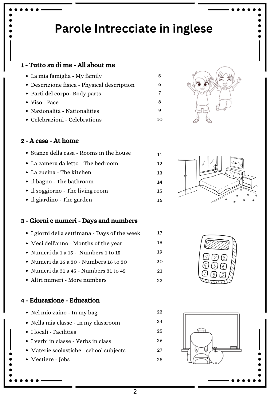Divertenti puzzle di parole in inglese, accuratamente suddivisi in 54 temi, sviluppati da un insegnante esperto.