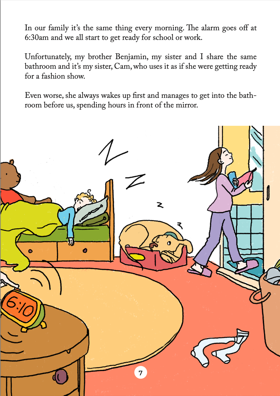 'Quelle matinée!' is one of the stories of 'La famille Martin' that will help children to learn French at home or at school. 'Quelle matinée!' focuses on the topics of daily routine and morning activities. It does so by introducing the use of the present tense of reflexive verbs in particular.